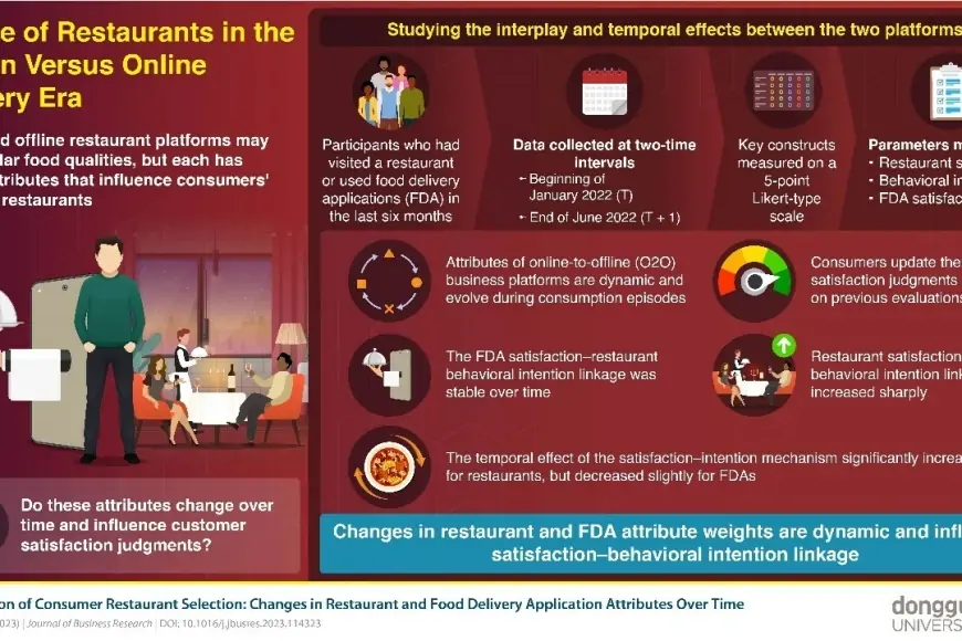 Scientists at Dongguk College discover the attributes influencing shoppers’ selection between in-person eating and on-line meals supply. It investigates the interaction of on-line and offline platforms and the way they evolve with time.