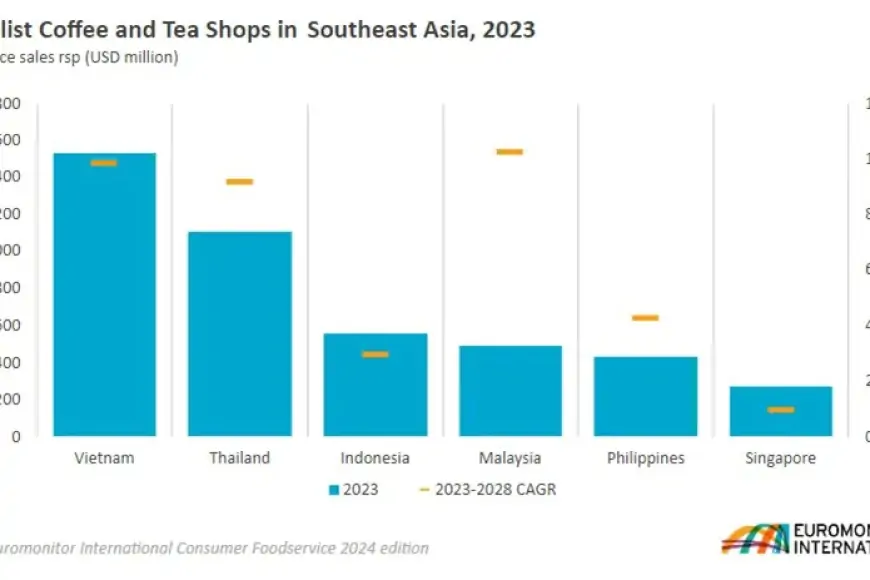 Espresso and tea retailers boomed as a number of international espresso chains entered Asia Pacific nations increasing quickly, significantly in Southeast Asia; accounting for US$4.4 billion and set to develop additional by an 8% CAGR between 2023 and 2028.