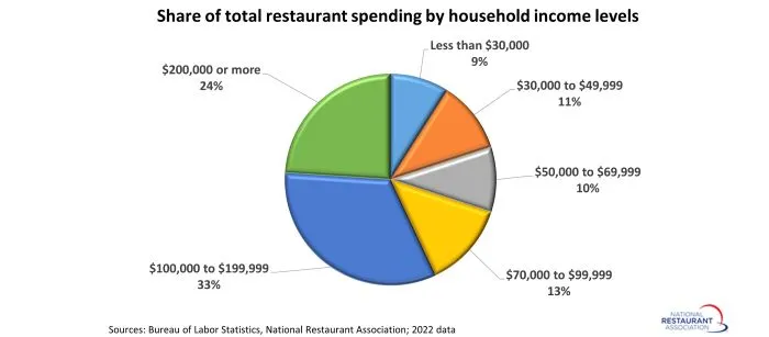 In line with knowledge from the Bureau of Labor Statistics, households with incomes of $200,000 or larger are accountable for 24% of the whole spending on meals away from dwelling, whereas households with incomes between $100,000 and $199,999 account for 33% of business spending.