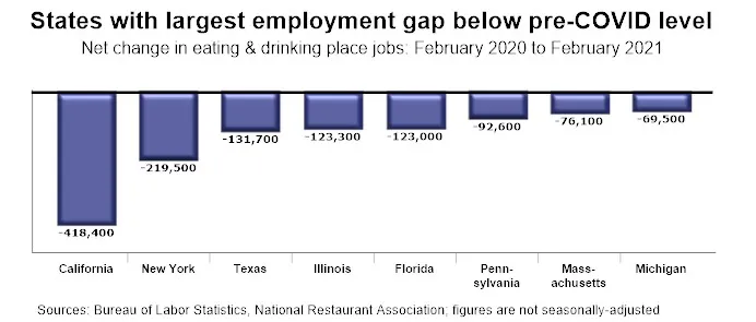 U.S. Restaurant Jobs Remain Below Pre-pandemic Levels in Every State and DC